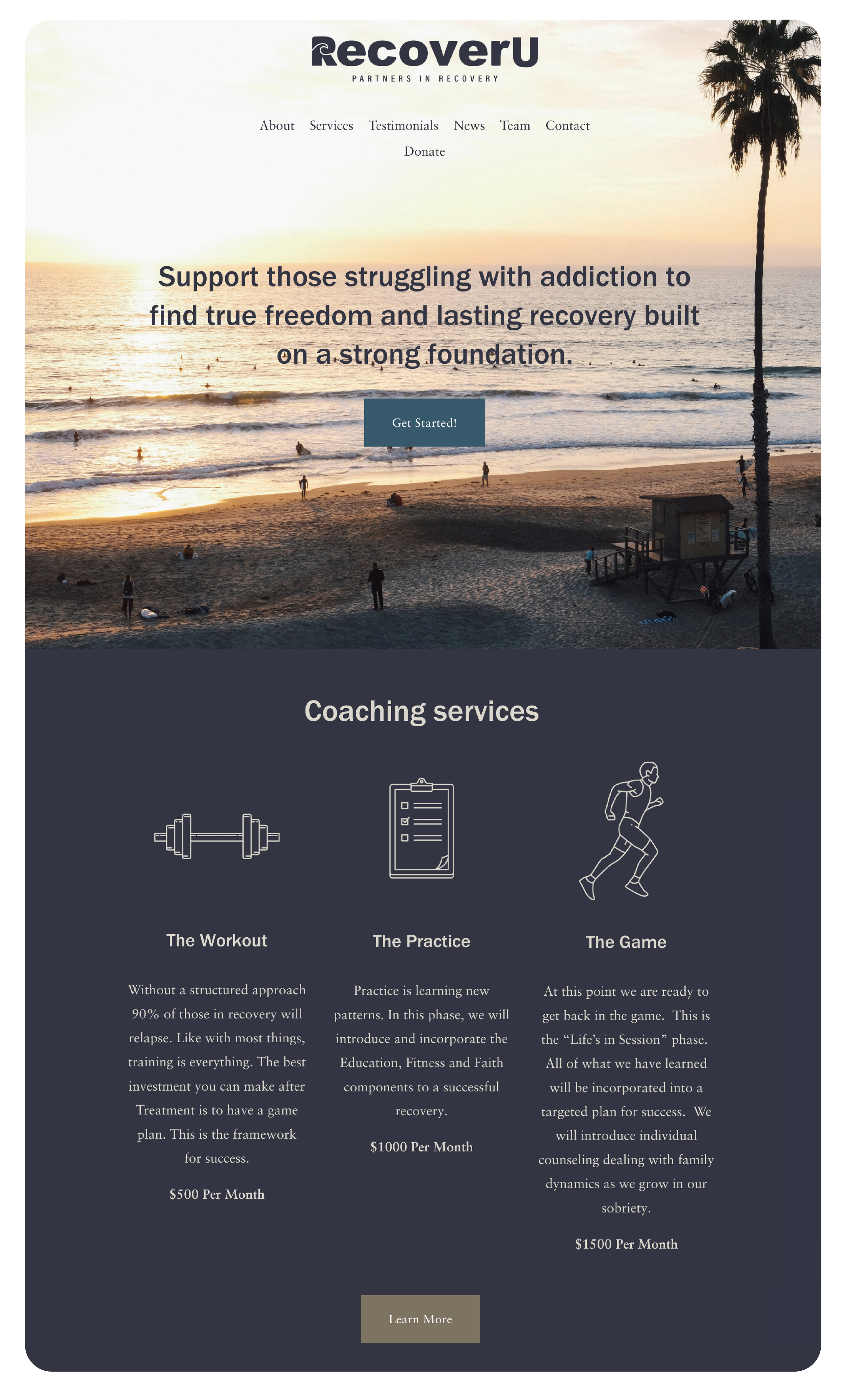 Recoveru is a sober living community in San Clemente, California, that is standing in the gap of rehabilitation and a new life, post addiction. The company approached me to help them develop a brand identity into something that is attractive, simpler, and more scalable, while retaining much of the original brand equity. The new marks and corresponding collateral appeal to the refreshing lifestyle of coastal living and are energized with a modern color story.