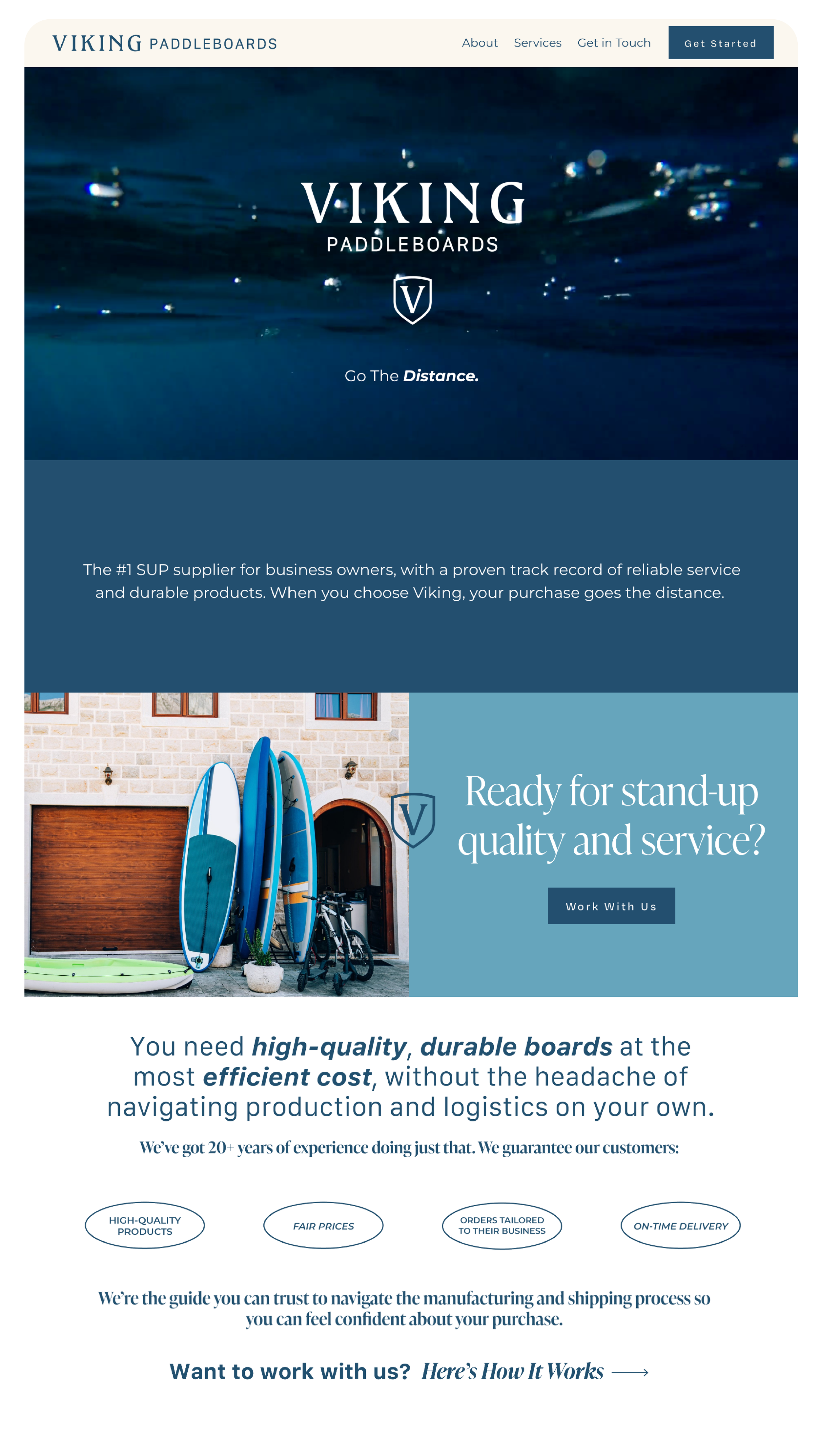 Viking Paddleboards is a local, family owned business that is one of the premium stand-up paddle board suppliers. they have a proven track record of reliable service and durable products. We designed a visual identity that seamlessly embodies southern California's vibrant surf culture, all the while upholding a timeless simplicity. Their website not only encapsulates the adventurous spirit of their audience but also provides clear, actionable steps for engaging with their services.